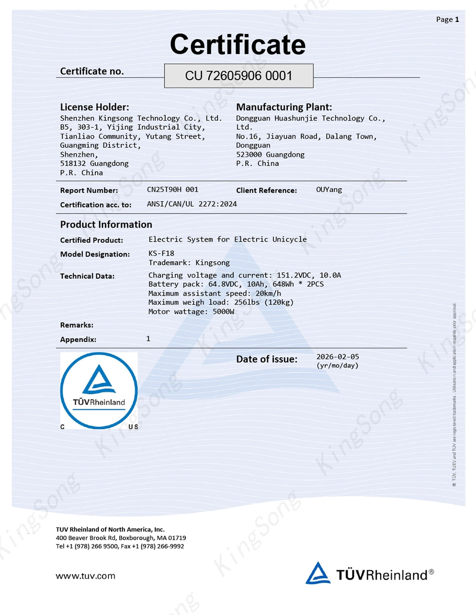 King Song F18, 2664Wh Samsung 50S High-Capacity Battery, Smart BMS, 5000W Motor, 4-unit suspension,UL 2272 Certified